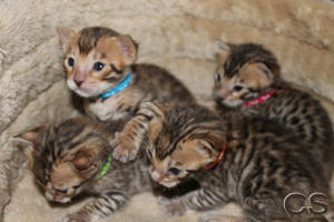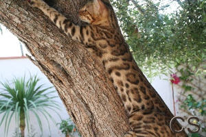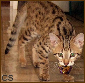 um gato doméstico e o gato leopardo de Bengala (Prionailurus