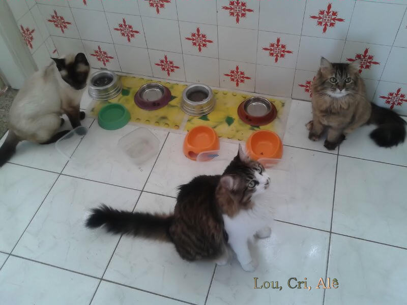 Loulou et ses parents faisant du shopping de thon, whiskas et d'autres 'papás'
